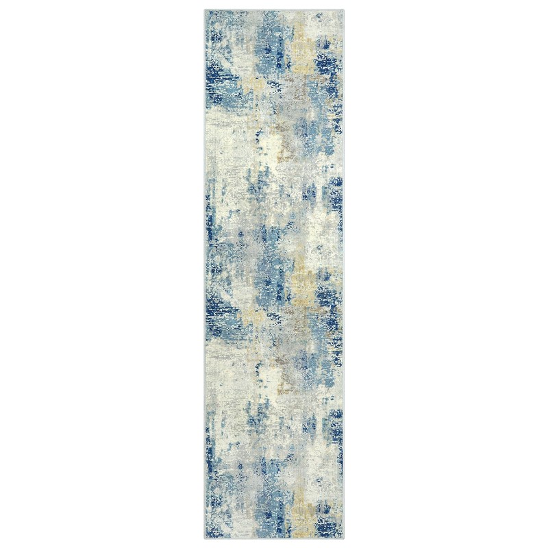 - [Modern Abstract Area Rug] - Add a pop of color to your living room or bedroom with this area rug. Designed with a delicate palette, this collection impresses with an abstract print with splashes of blue, yellow, and beige hues. Its purposefully faded look fits right in modern industrial and contemporary homes.