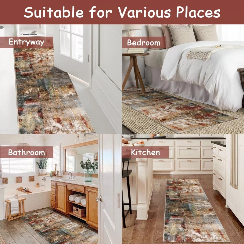 - [Functional 2x7 Rug] - Place a 2'x7' rug by each of the bedside for a colorful, cozy accent. Or, put the abstract rug next to the kitchen sink. For entrance, living dining room, bedroom, office, a rectangle abstract mat are also prerfect for daily use.