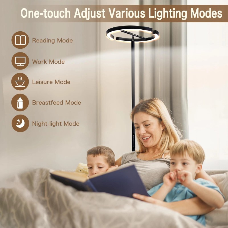 - Stepless Dimmable Floor Lamp:You can easily adjust the color temperature from a cozy 3000k warm light to a crisp 6000k cool white light, dimming or brightening smoothly from 5% to 100%.The smart memory function restores your last setting, so your preferred lighting mode is ready whenever you turn it on
