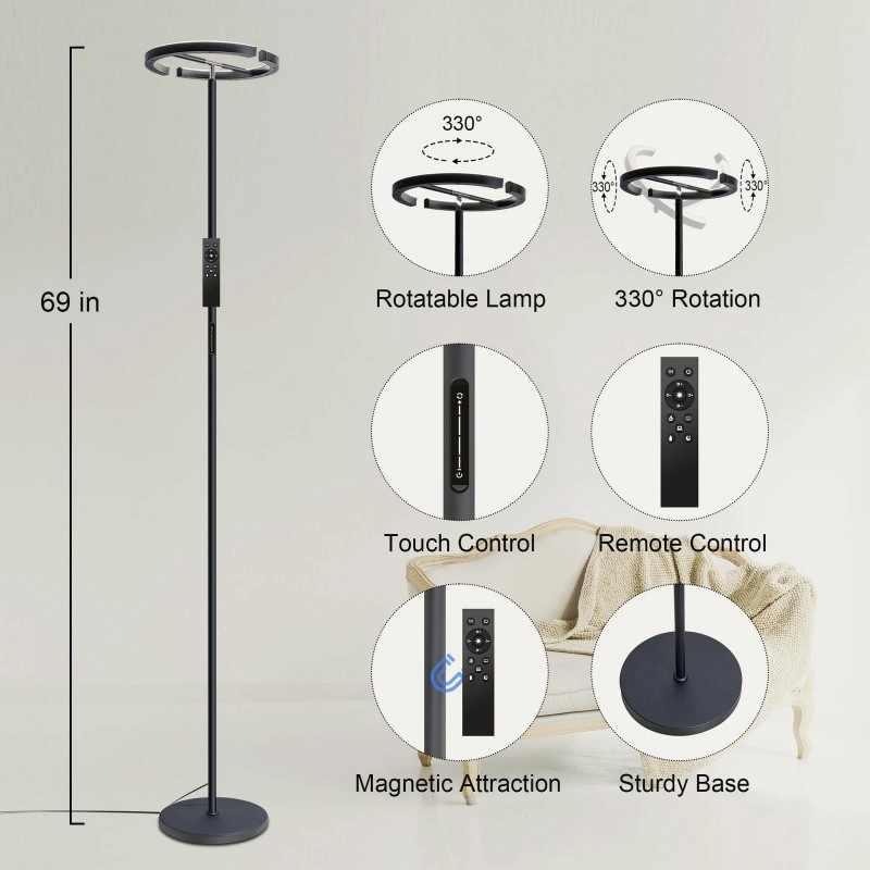 - Remote and Touch Control:Convenient 2 control methods, you can use floor lamp with remote control, or touch directly on the bedroom lamp. The remote control has a magnetic design and can be attached to the metal lamp body so you don't have to search for it
