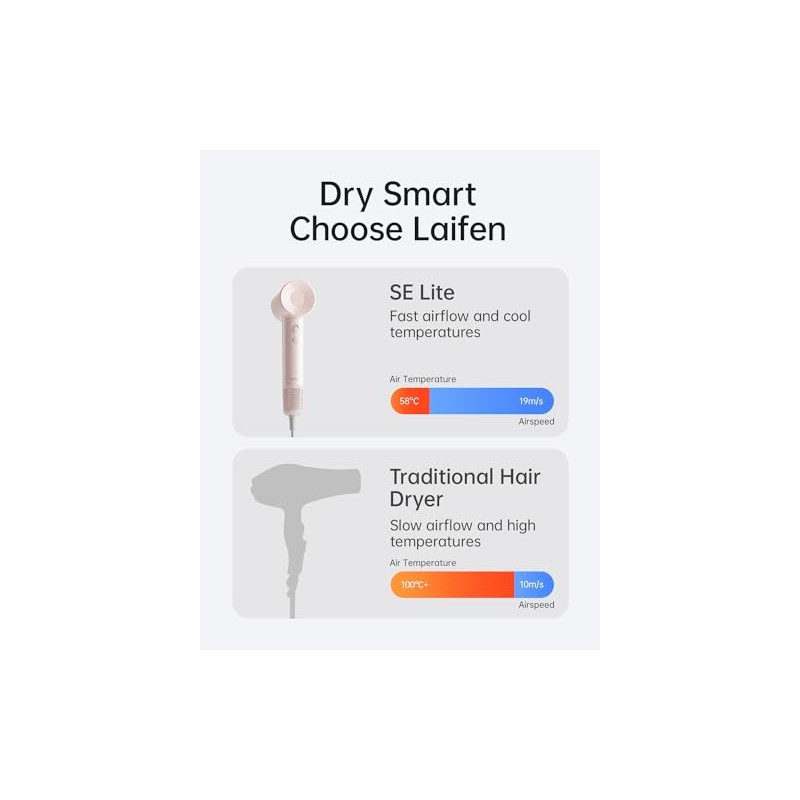 - Packed with Features:The SE Lite bring stylish new features to Laifen's line of high-speed hair dryers like the LED Air Temperature button and dual-layer filter