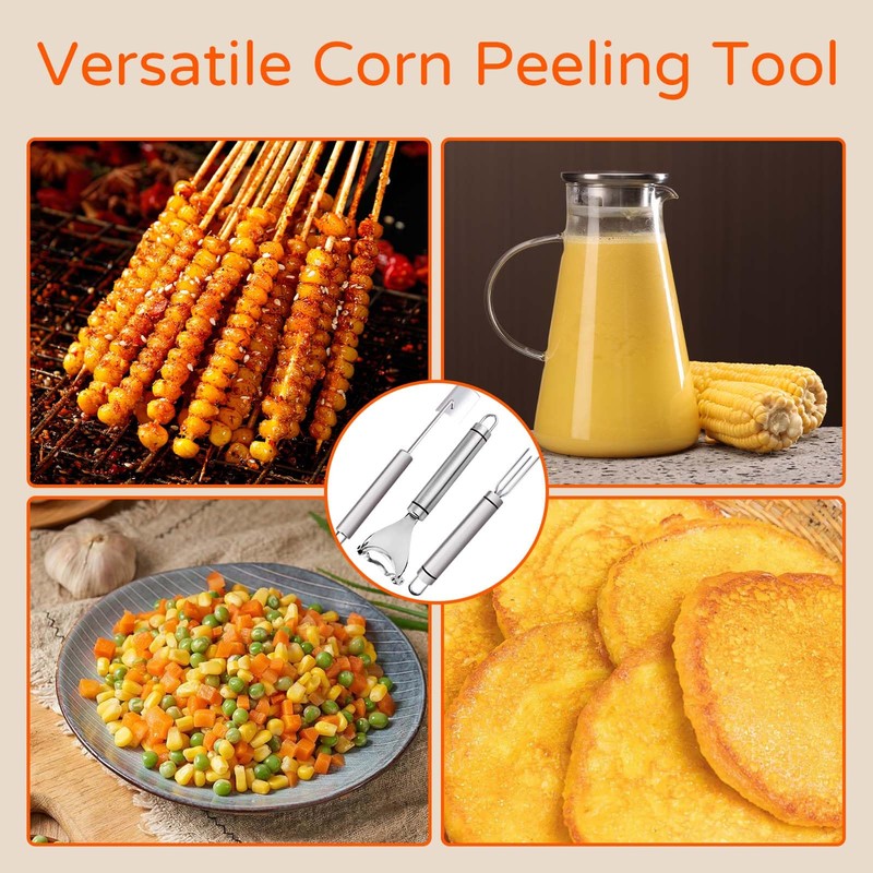 LaifuTu 3PCS Corn Peeler, New Upgrade Corn Peeler for Corn on the Cob, Efficient Stainless Steel Corn Stripping Tool, Durable Corn Stripper, Versatile Corn Peeling Tool for Home Kitchen
