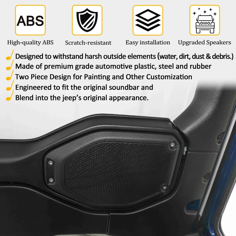 - 【Superior Materials】These speaker pods are made of premium grade automotive plastic, steel, copper, and rubber. Durable and resistant to impact, UV, heat and vibrations for long-lasting performance. Speaker grille and frame are matte black to match your original soundbar setup. The frame can be easily painted if desired by removing screws on the back.