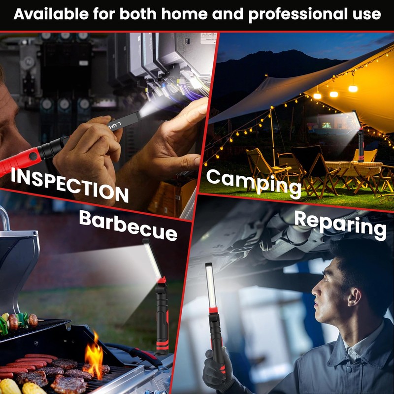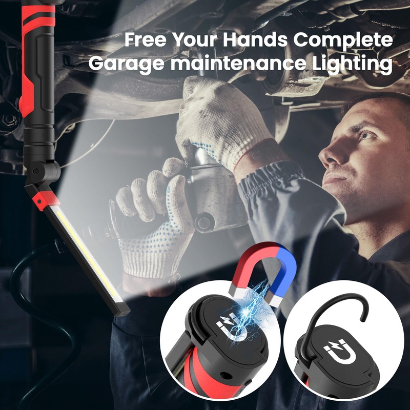 • Portable and Versatility: This magnetic work light is compact and portable. The rechargeable lamp can be folded freely 180 degrees, which can easily fit in your toolbox or backpack. This work light can be used as a flashlight for outdoor or as a mechanic light for repairs. The led work light can be used for barbecuing, camping, reading, car repairs and anything else you want to do at night.