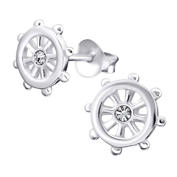 Laimons – Stud Earrings – 925 Sterling Silver – Zirconia – Women – Ship’s Helm – Shiny