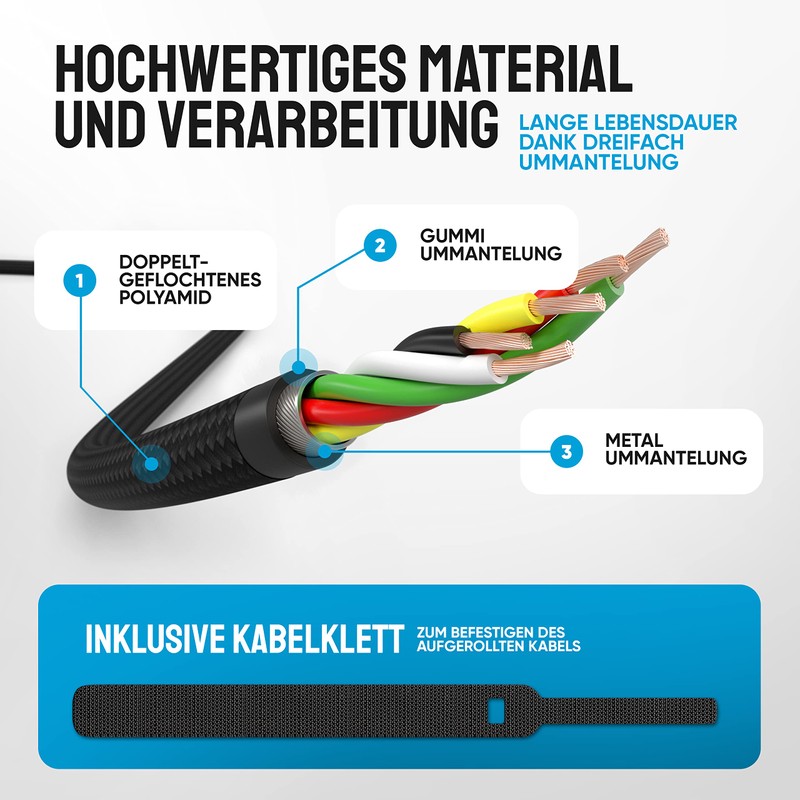- ?? ???????????????????????? ???????????????? - Das Kabel wurde aus hochwertigem Kunststoff gefertigt und ist mit einer extra dicken Stoffummantelung vor Besch?digungen gesch??tzt. Ideal f??r den Outdoor Einsatz!
