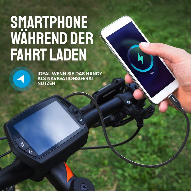 - ?? ?????????????????? ?????????? - Laden Sie w?hrend der Fahrt Ihr Handy einfach mit dem E-Bike Ladekabel ??ber Ihren Fahrradtacho auf. Besonders praktisch, wenn Sie Ihr Handy als Navigationsger?t nutzen!