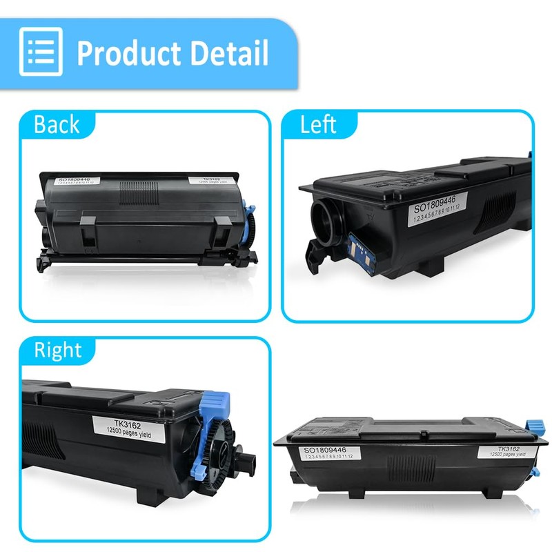 - 【What You Will Get】 1 pack black toner cartridge replacement for Kyocera TK3162 TK-3162 . Page Yield - Approximate 12500 pages at 5% coverage (Letter / A4).