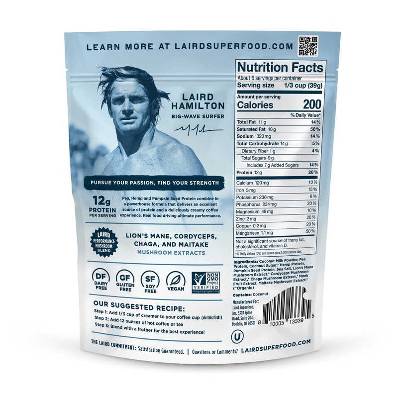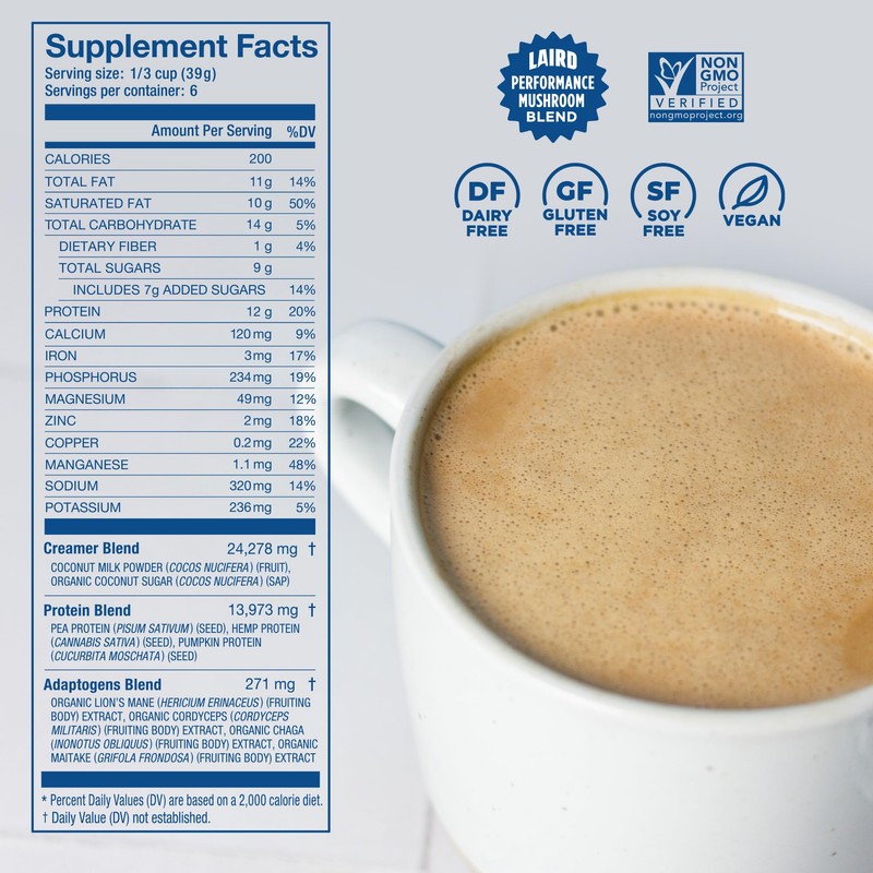 Laird Superfood Non-Dairy Protein Creamer, Sweet & Creamy + Adaptogens, Superfood Creamer with Functional Mushrooms, 12g Protein Per Serving, 8oz Bag