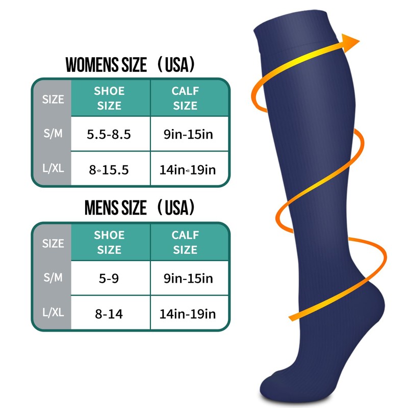 - PERFECT FOR EVERYONE-Ours premium compression socks for all your favorite activities.These socks will keep doing their job while you focus on your daily routine,whether you're driving the kids,running around for meetings at work,doing chores at home,or doing anything else at all. everyone can benefit from the power of compression to feel their best and conquer their day, every day.Our socks perfect for everyone regardless of age,gender and location!
