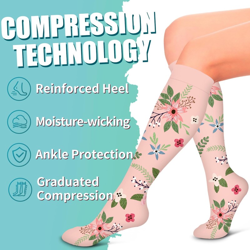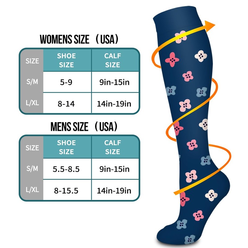 - AMAZING EFFICACY-With a unique compression level that isn't too loose or too tight,it means you can wear our compression socks for women all day long comfortably.As they gently constrict the tissues and oxygenate the blood,they move waste fluids out,promoting ample circulation.Remove stress and stimulate every cell,reduce fatigue,soreness,cramping and prevent Varicose veins at the same time Ensure the healthy functioning of your circulatory system.Keep your legs feel fresher and more energized.