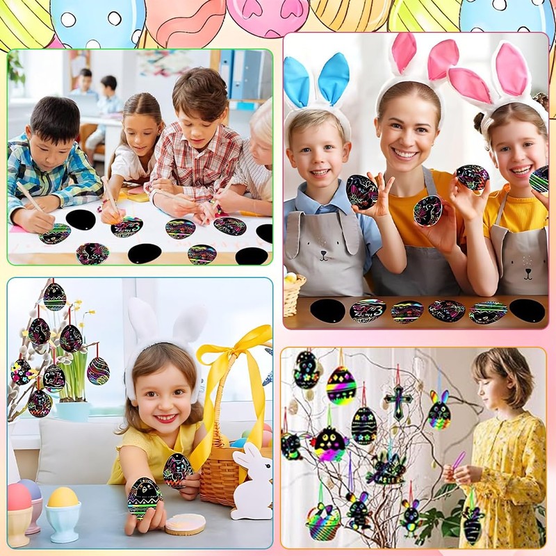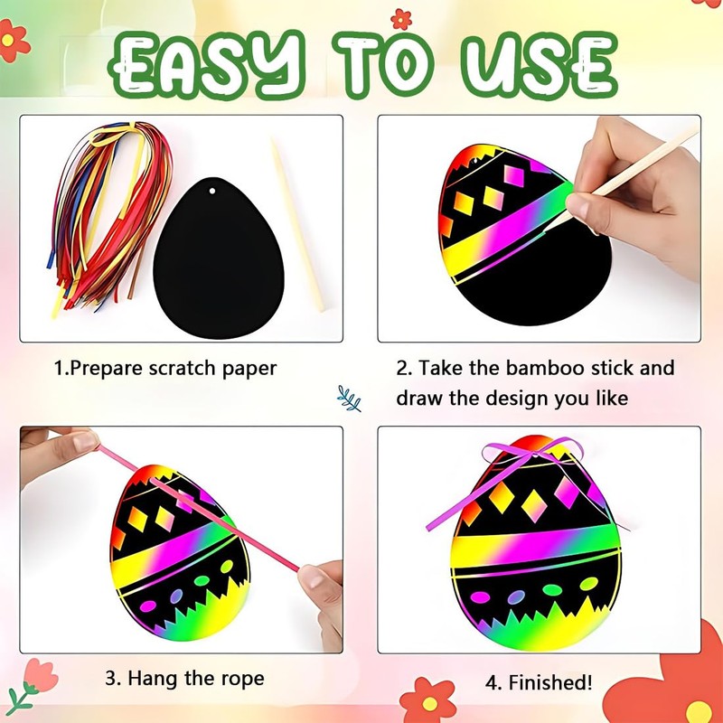 - 【Vielfältige Anwendungsmöglichkeiten】Unser Oster-Kratzpapier eignet sich für Osterpartys, Bastelprojekte, Kunstunterricht und vieles mehr. Damit können Sie Decken, Wände, Türen und Fenster dekorieren.