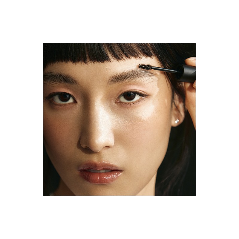 Apply an appropriate amount to the eye brow and then brush upwards from the front of the brow, diagonally from the middle and from the end in the direction of hair’s growth to tidy up the brow.