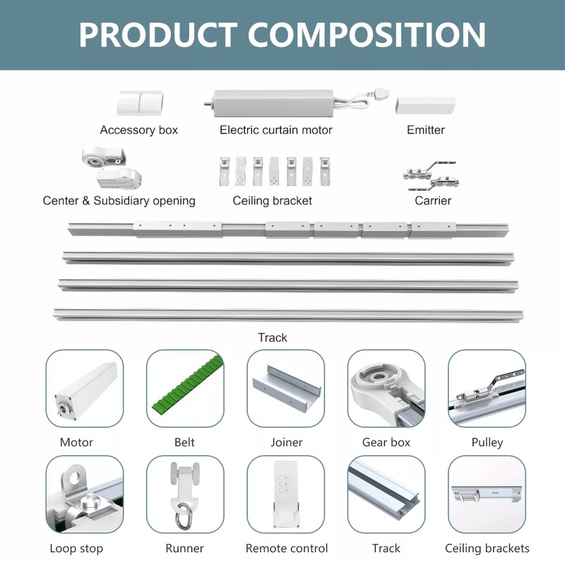 【Safer Induction Resistance and Stop Function】 When you use hand to pull the opening or closing curtain, the curtain will automatically stop if meet resistance(such as children play and pull the curtain) to avoid accident occurring). DC curtain motor with lightly open and lightly close function. When it starts and near the limit position, the speed will obviously slow and make the curtain runs more elegant.