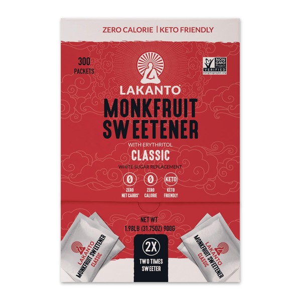 Lakanto Classic Monk Fruit Sweetener with Erythritol Packets - White Sugar Replacement - Classic (3g - 300 Count)
