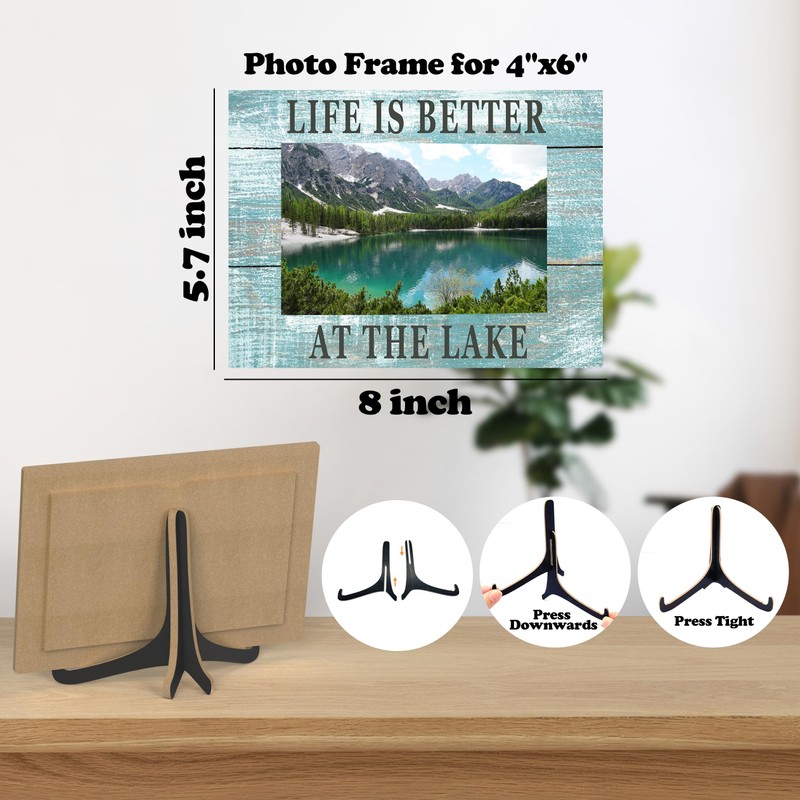 Lake Photo Frame - Life Is Better At The Lake - Summer Wooden Tabletop Picture Frame With Stand, Desk Decor For Living Room Bedroom Cafe Bar, Birthday Housewarming Gifts for Friends Colleagues -B42