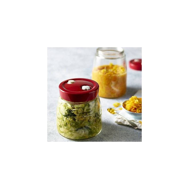 There’s no messing around with muslin cloths or remembering to 'burp' your jar as the airtight lid features a special one-way valve that allows built-up gas from the fermenting process to escape automatically, so there’ll be no explosive situations, while also preventing contamination from outside, which can make your food go mouldy.