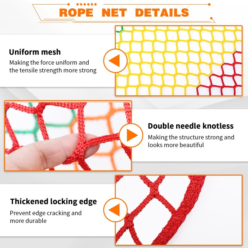 - Thickened locking edge: To further reinforce the stability of our stair railing protecting net, we have added an additional layer of locking edge along the rope's perimeter. This not only prevents edge cracking but also extends the protective net service life of our.