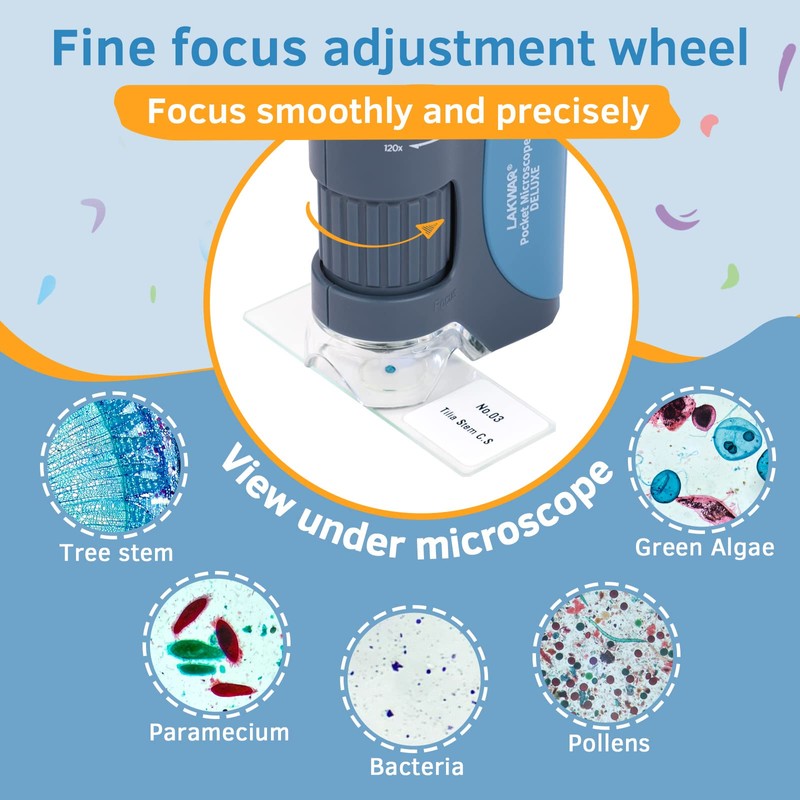 LAKWAR 60x-120x Mini Pocket Microscope for Kids Adults, Portable Handheld Microscope with Microscope Slides, Miniscope Portable Microscope for Kids Students School Science Education