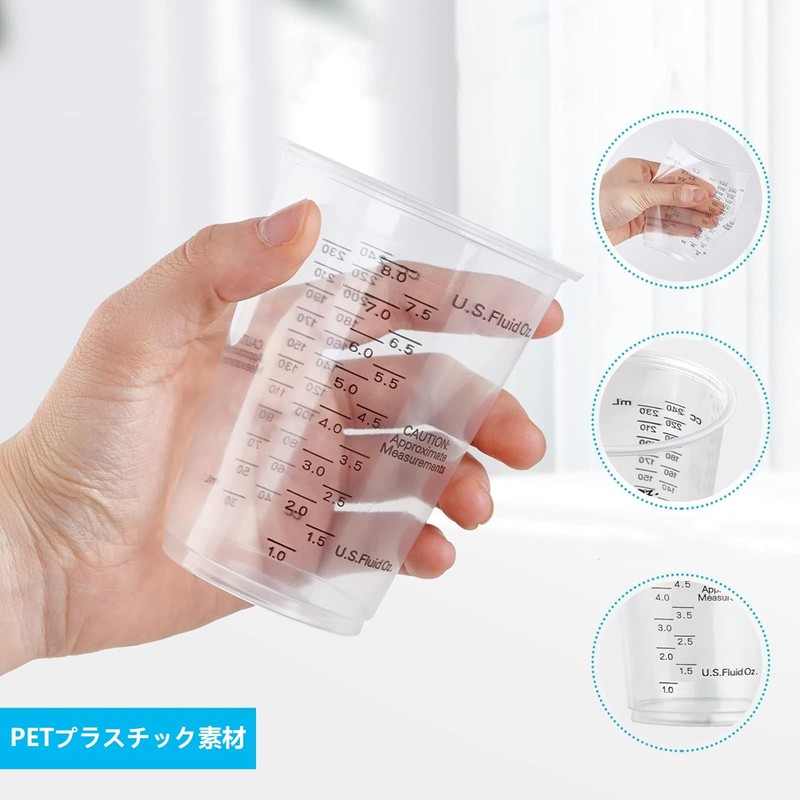 Color: 8.5 fl oz (240 ml) measuring cups x 50 pieces + stirring sticks x 50 pieces