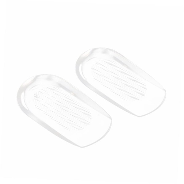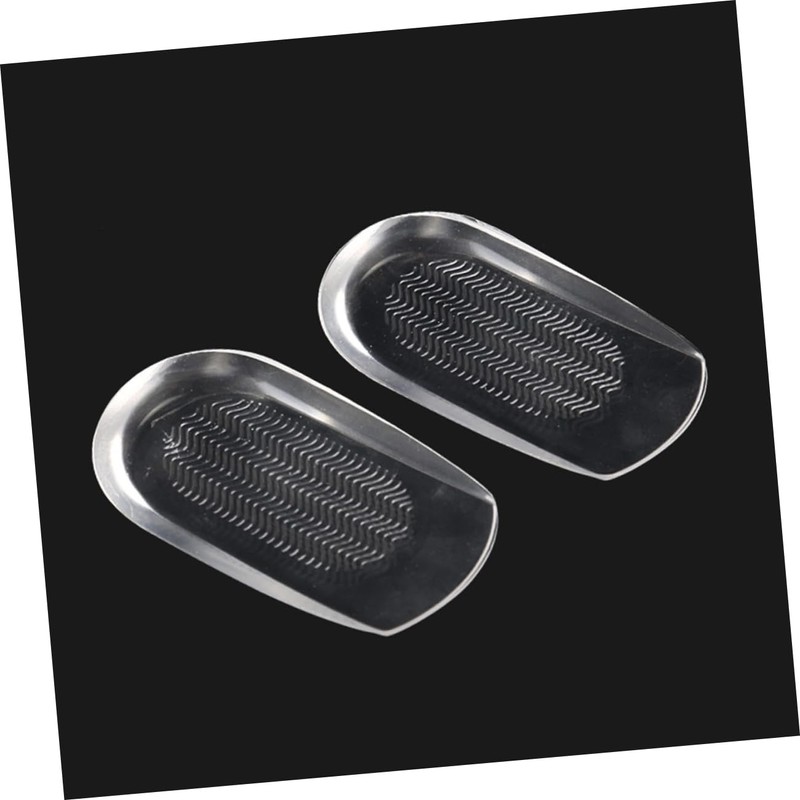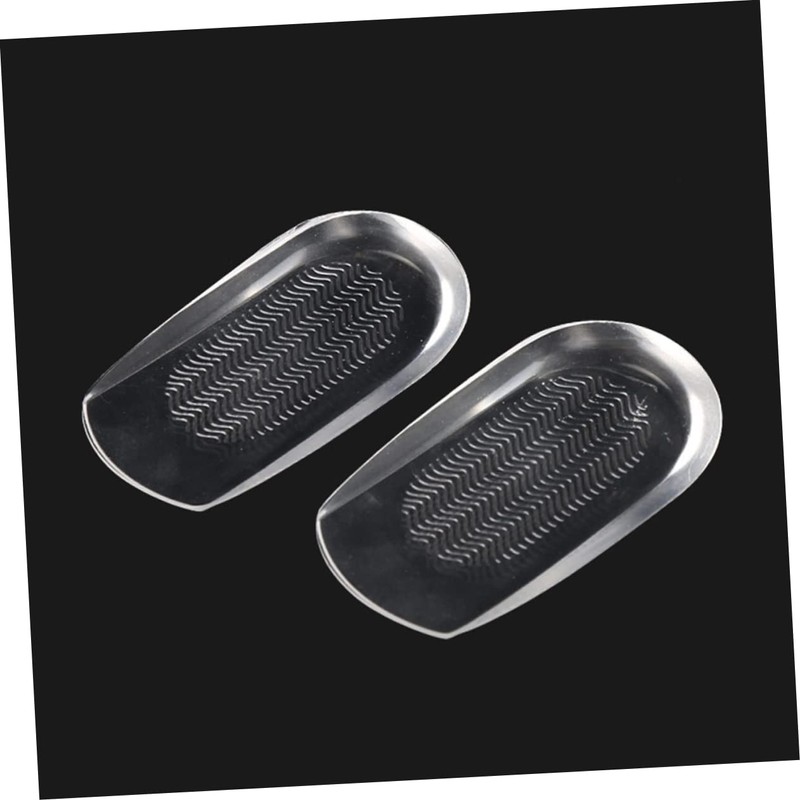 insoles for heels Being clear, it is hard to be noticed unless watched in short distance.Anti-Slip heel Protectors Half insoles closely fits heel and arch and warp and protect them.Reusable foot half pad It's , washable and reusable with good performance.shoe pads for high heels These clear high heel shoes inserts are made of self-adhesive, elastic and durable gel