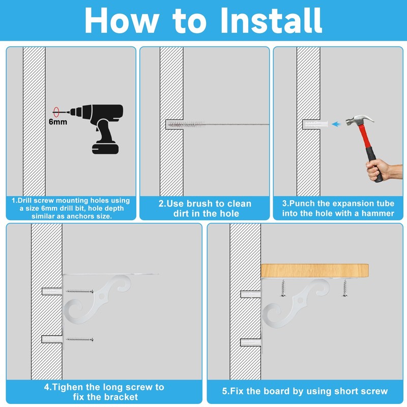• Versatile application: the brackets for shelves not only suitable as a wall shelf, but especially suitable for wall desks, kitchen worktops, garages, bookshelves, garden shelves, bathroom shelves, etc. The vintage shelf holder offers practical and aesthetic solutions for different scenarios.