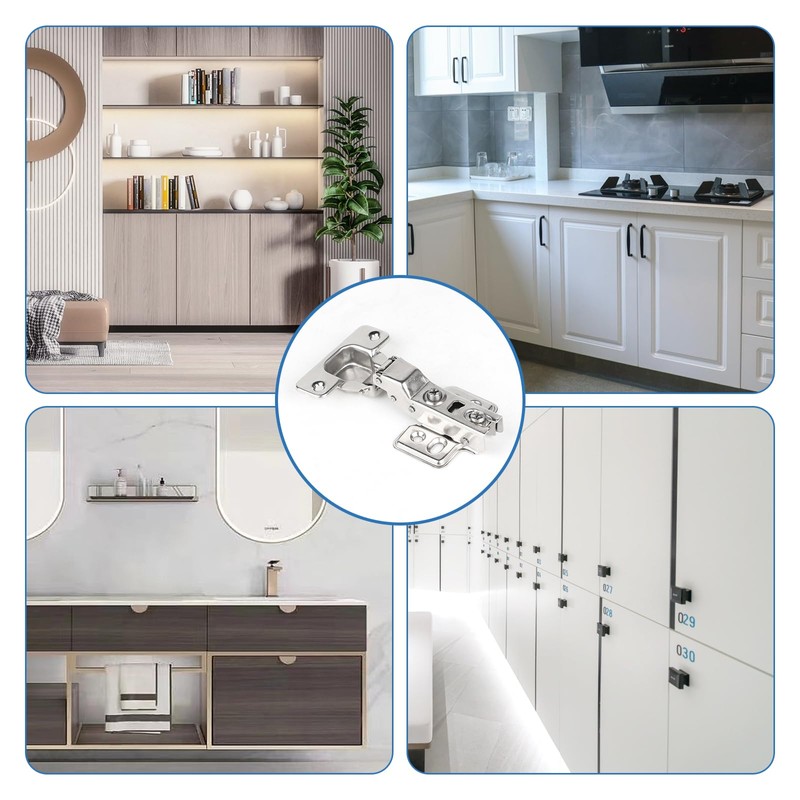 - Wide application: the cabinet and furniture hinges are widely used in various types of cabinets, wardrobes, bookcases, wine cabinets, bedroom cabinets, TV cabinets, bathroom doors as well as various doors used in homes and offices.