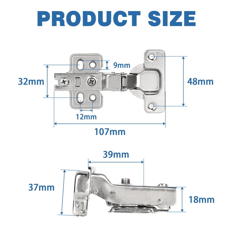 - 【Universal use】Opening angle: 110 degrees; Cup diameter: 35 mm; Cup depth: 11.5 mm; Hole spacing: 48 mm. Our pot hinges meet standard sizes and are suitable for most furniture.
