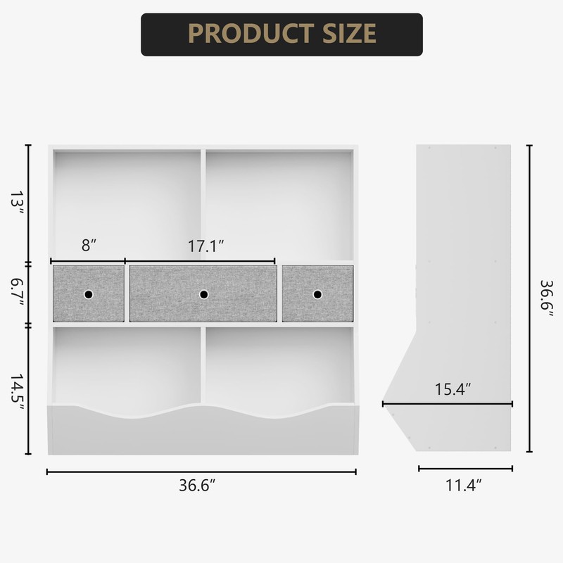 - Ample Storage Solution: At 36.6 inches wide and tall, this toy storage organizer offers 4 spacious cubes and three deep drawers—two small and one large. It's the ideal choice for keeping your child's playroom or bedroom tidy, while organizing all their toys and books efficiently