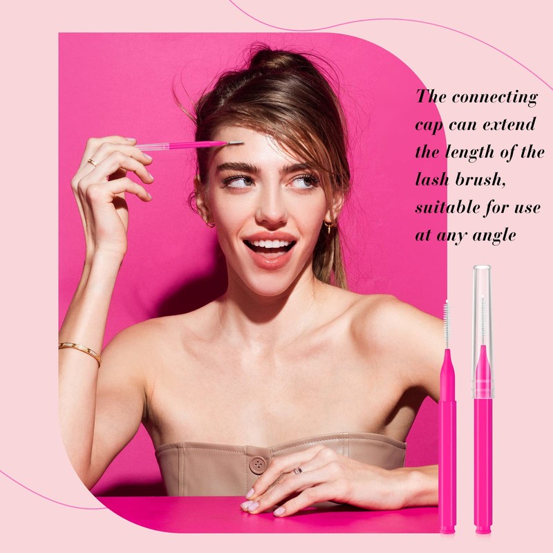 Lallisa 100 Pieces Micro Eyebrow Brush with Cap Brow Lamination Brush Eyebrow Brush Eyelash Brush Multifunctional Micro Lash Comb for Eyelash and Eyebrow Extensions Tool (Pink)