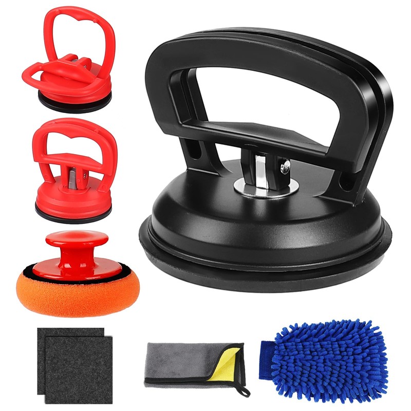 • 【Car Dent Removal Kit Cotent】The body repair dent removal tools includes three different sizes of suction cups. It also comes with a microfiber car wash mitt, a towel, a nano cloth for car scratch removal, buffing pads and instruction manual. This car dent puller kit does not require any additional tools or equipment.