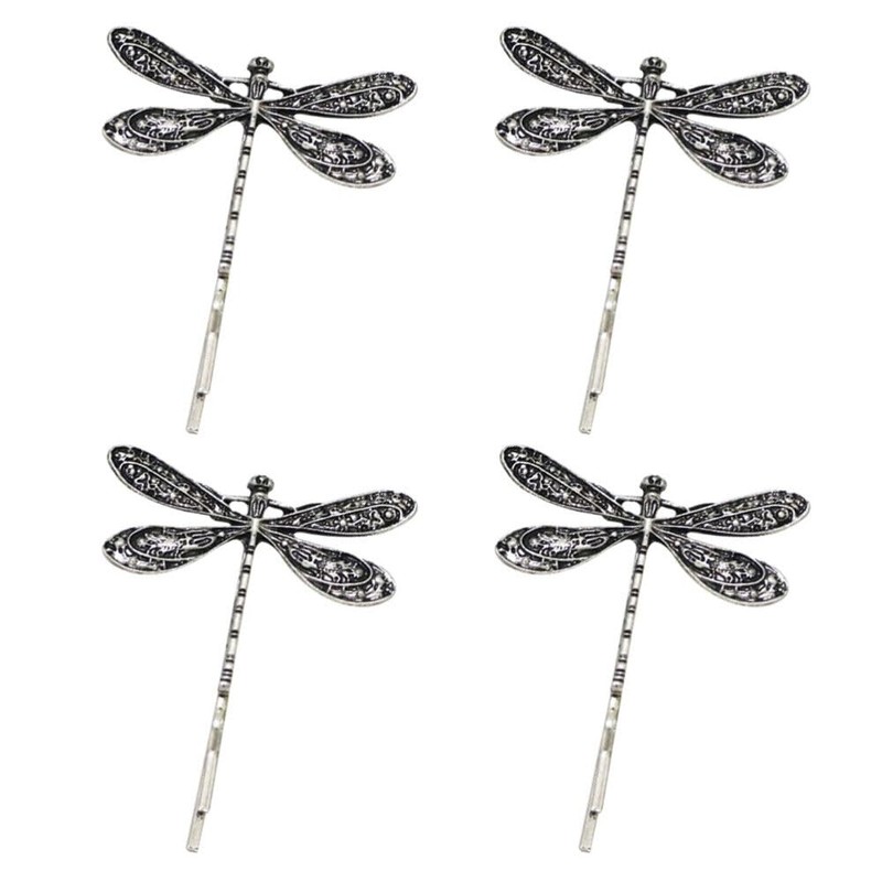 LALOCAPEYO 4 Pcs Of Antique Silver Retro One Line Dragonfly Hair Clip Dragonfly Bobby Barrettes Retro Hair Clip Metal Bobby Barrette Suitable for Various Occasions Such As Wedding Banquets and More