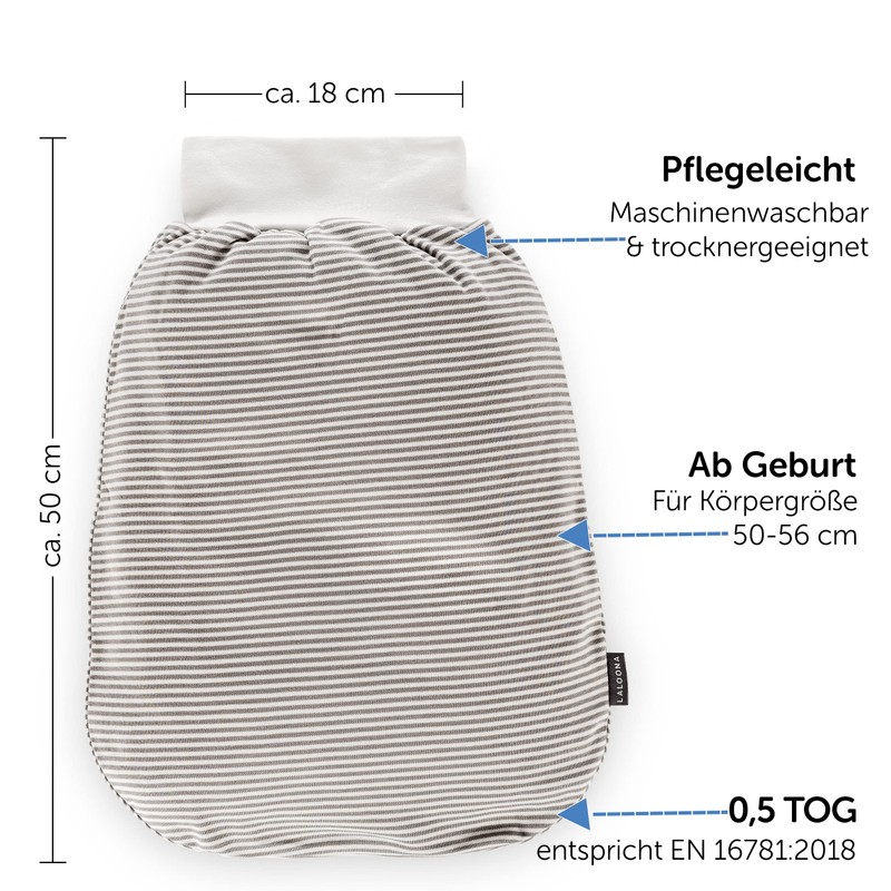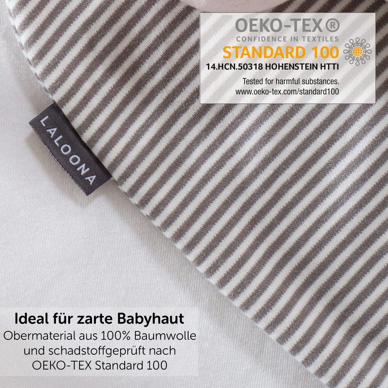 LaLoona Baby Sleeping Bag Made of Cotton, Lightweight Sleeping Bag without Top for Kicking and Cuddling, Oeko-Tex® Standard 100 Tested, Stripes White Beige