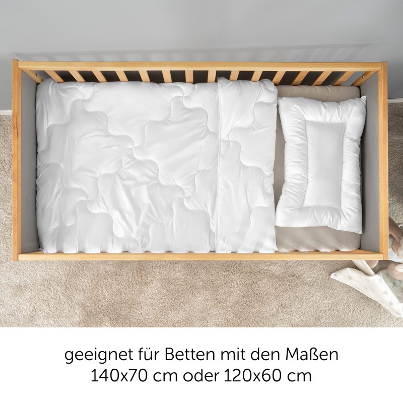 - Cuddly soft: the 2-piece bedding set consisting of blanket and pillow (100 x 135 cm, 40 x 60 cm) is suitable for baby beds and cots with the dimensions 120 x 60 cm or 140 x 70 cm. Practical bed equipment for toddlers