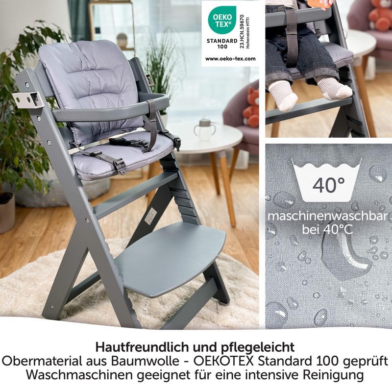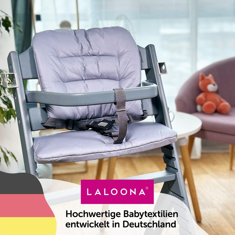 LaLoona Seat Cushion / High Chair Cushion for Safety 1st / Bebeconfort Timba - 2-Piece Seat Cushions, Washable, Oeko-Tex Standard 100, Machine Washable - Grey Coated