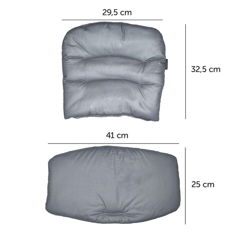 With the high chair seat cushion for Safety 1st / Bebeconfort Timba - coated grey from LaLoona, your child sits pleasantly soft and cosy. The 2-piece cushion has the perfect fit for the seat and backrest of your bebeconfort Timba high chair. So the seat cushion holds particularly well and does not slip. With Velcro fasteners, it is easily and quickly attached.