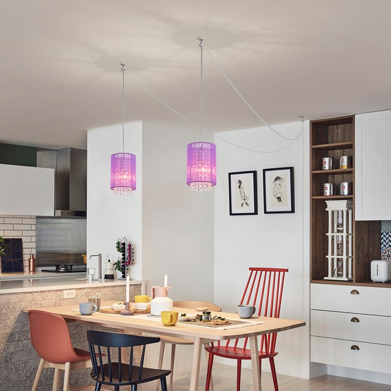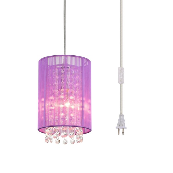 LaLuLa Purple Plug-in Hanging Lamp- Easy Install Crystal Pendant Light for Girls Bedroom, Nursery, Playhouse, Vanity, Closet, Bathroom