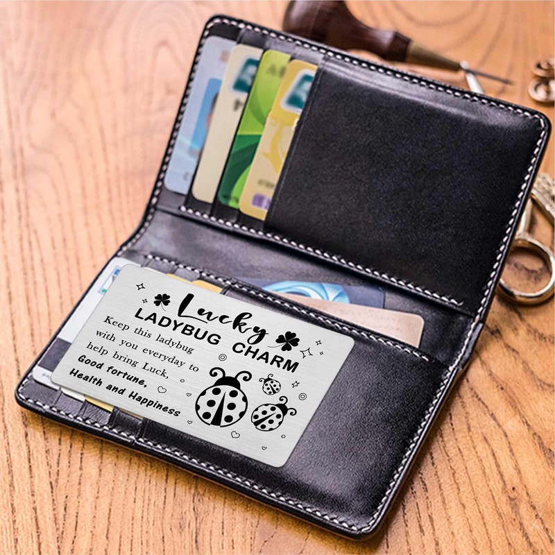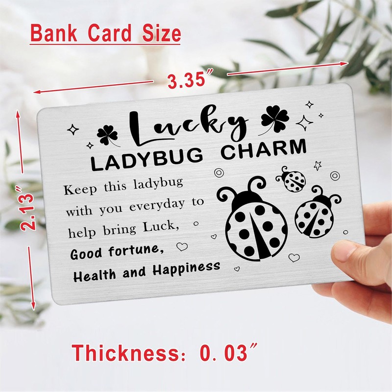 - Size of Lucky Ladybug Charm Card - Credit card-sized design, fits wallets perfectly, Ideal for travel, business, or daily life