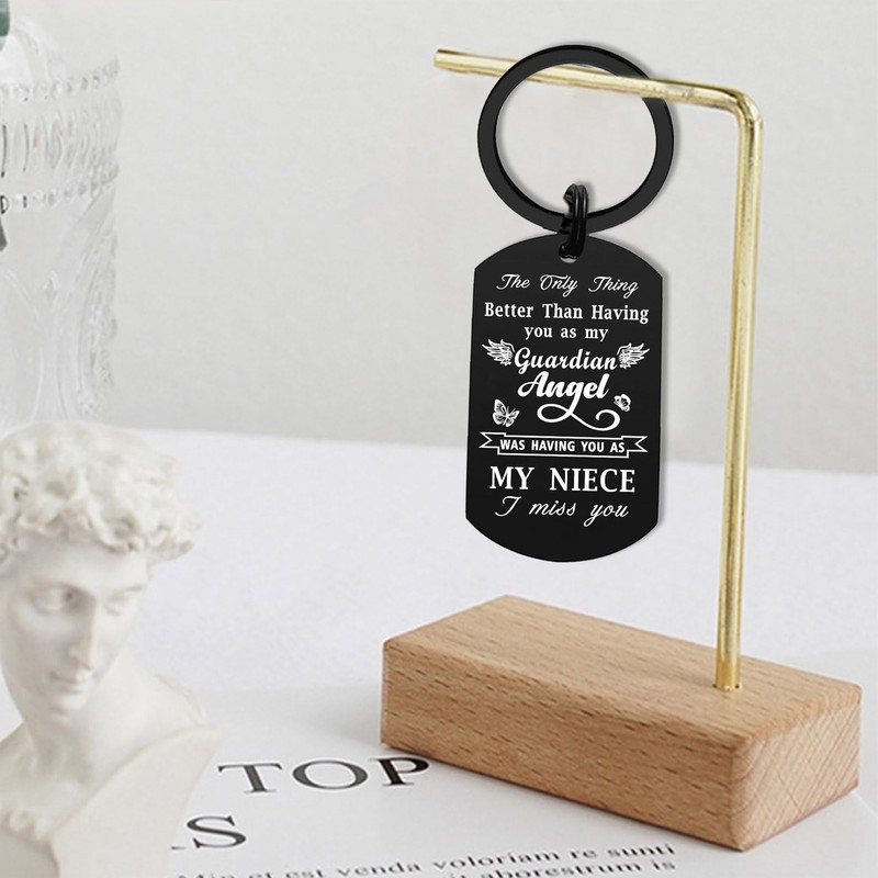 - Double Sides Laser Engraved - One side engraved with the saying "The only thing better than having you as my guardian angel was having you as my niece, I miss you", while the other side engraved with "Forever in my heart"