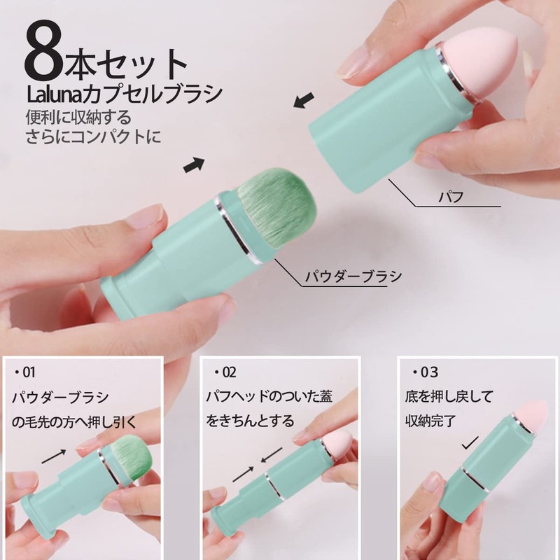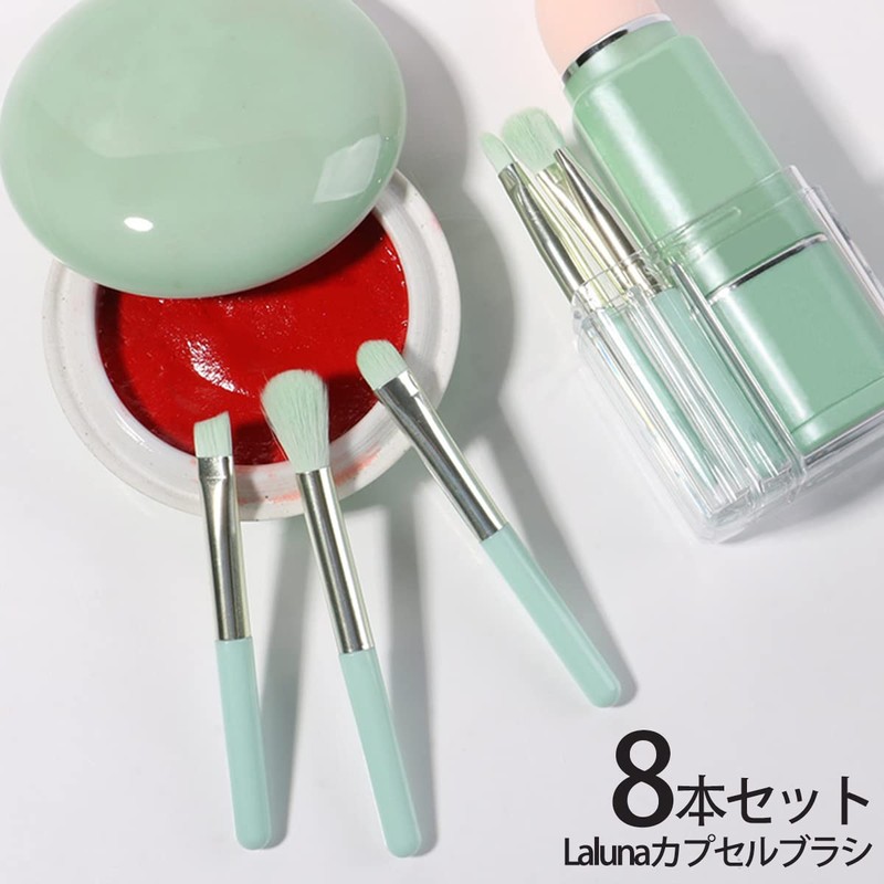 Laluna Makeup Brushes, Set of 8, Popular, Cute, Mini, Portable, Compact, Portable, Capsule Makeup Brush, Makeup Brush, Eye Shadow, Powder Brush, Suitable for Sensitive Skin, Soft, Dense Bristles and Good Powder-Containing Power (patina)