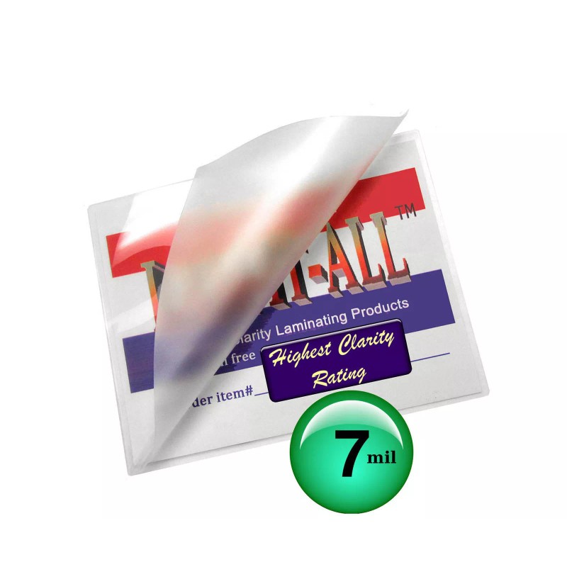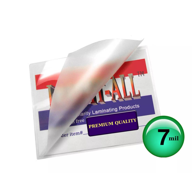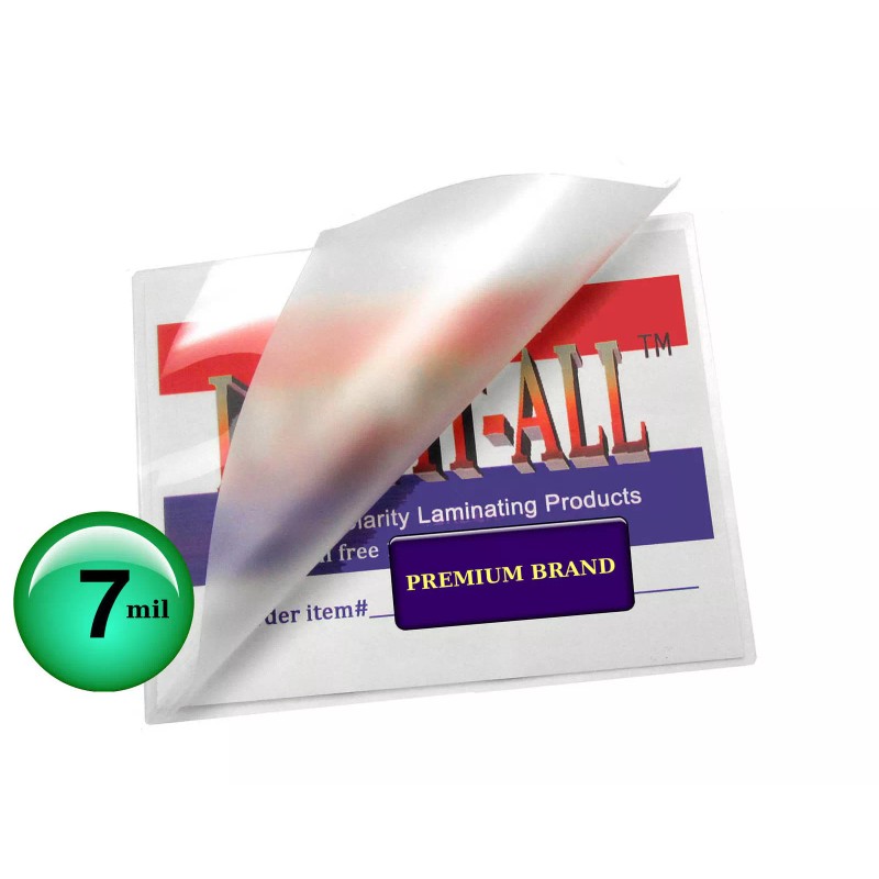 • LAM-IT-ALL Premium Letter size 9 x 11.5 inch thermal laminating pouches are top 10% high clarity world rated after adhesive is heat activated. The clear glossy finish protects and enhances colors and are typically used for 8-1/2 x 11 sheets. 7 mils thick per flap provides extra rigidity and strength for handling and wear close to that of 10 mil pouches, but without the extra bulk and cost. These laminating pouches have small radius rounded corners for a professional finish.