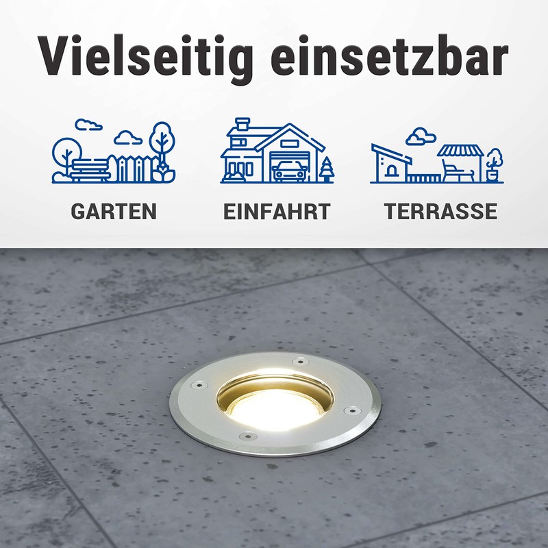 - IP67 water protection: the robust LED recessed floor light with rust-proof stainless steel panel in premium quality is perfect for outdoor use