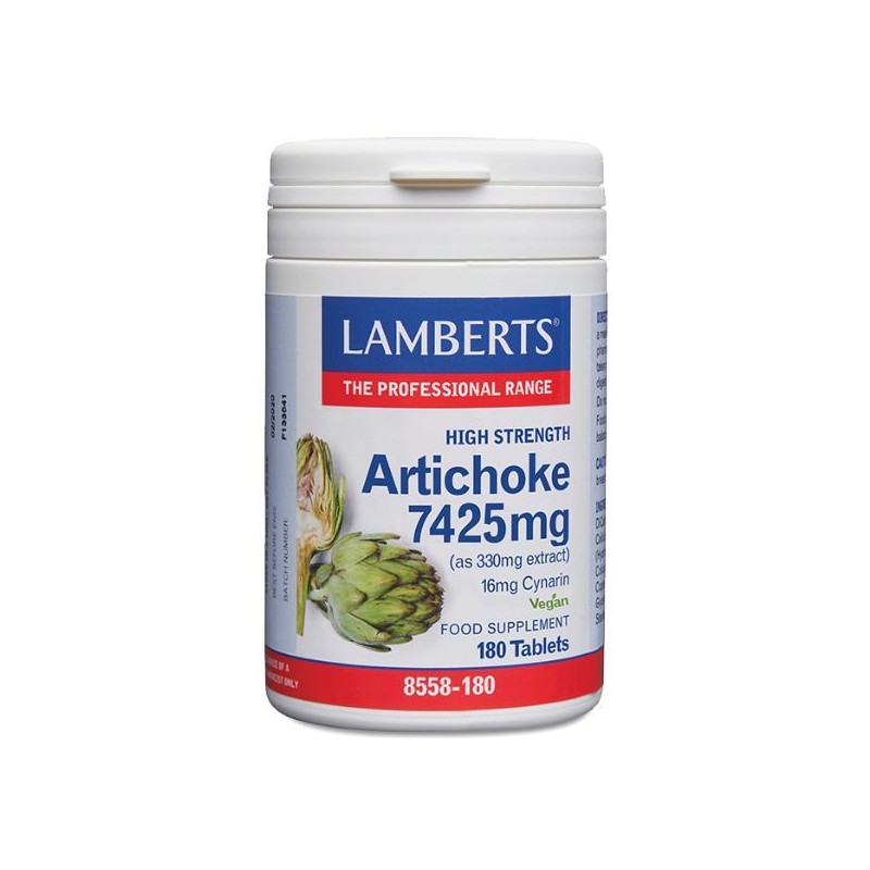 Lamberts Artichoke 7425 mg is a dietary supplement with high strength artichoke extract, titrated in cynarin. Artichoke is a vegetable rich in fiber, B vitamins, vitamin C and magnesium.