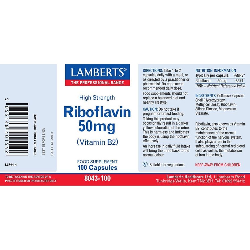 Lamberts B2 (Riboflavin) 50 mg 100 caps