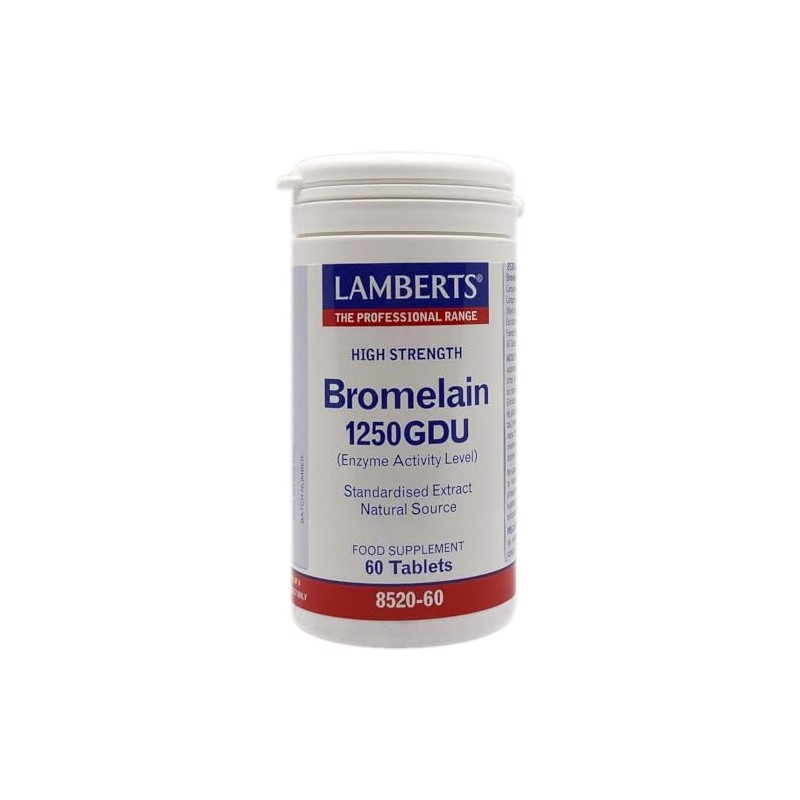 - Robust bromelain supplement, with 1250 GDUs for each tablet.