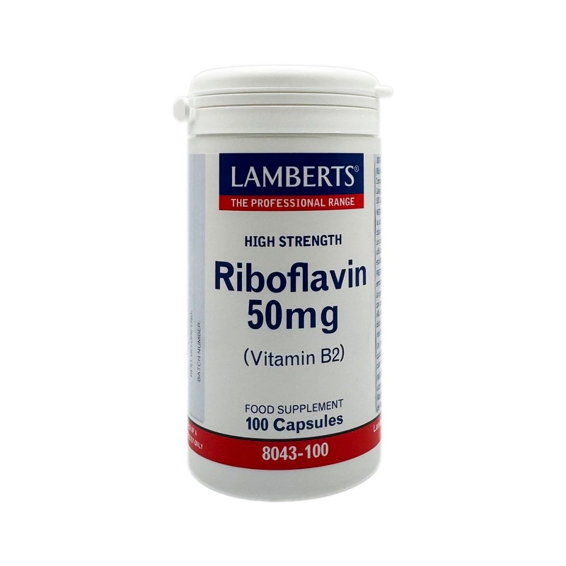 Product descriptionLamberts Riboflavin 50mg Capsules is a high-strength vitamin B2 supplement formulated to promote overall health and well-being. Designed to meet the needs of those seeking to increase their riboflavin intake, it is particularly beneficial for individuals with specific nutritional demands or those following restrictive diets.IngredientsEach capsule delivers: Riboflavin (Vitamin B2) 50mg
