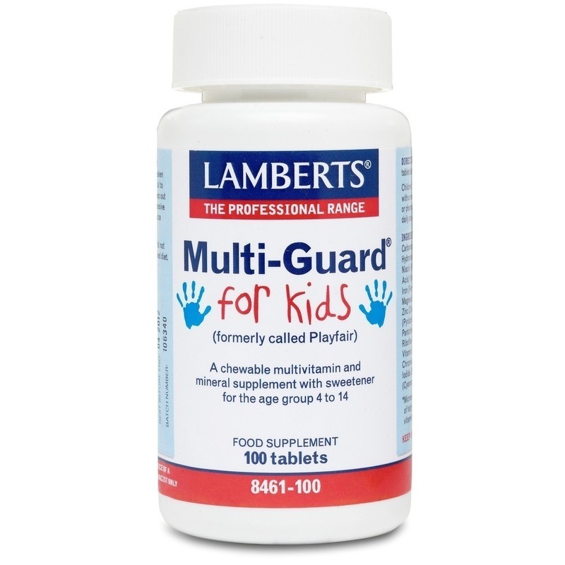 Good nutrition is important in children, particularly in periods of rapid growth or when the child expends a lot of energy on sports and other activities. Unfortunately this is the age when certain food dislikes and food fads can threaten the nutritional adequacy of the diet. Multi-Guard® for Kids remains one of the best children’s formulas available in the UK. Some High Street brands provide only vitamins and one or two minerals. Our product provides useful levels of all the important vitamins and trace minerals. These pleasant tasting chews have no added sugar and are therefore unlikely to contribute to tooth decay. It can be used alongside other food supplements such as our Chewable Calcium, and Vitamin C powder.