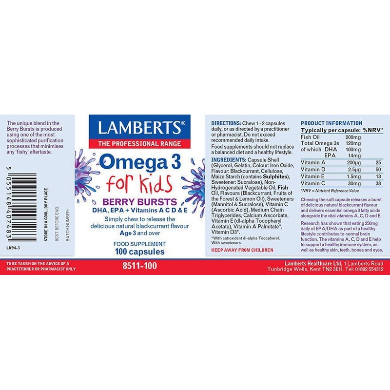 Lamberts Omega 3 for Kids Berry Bursts 30 caps