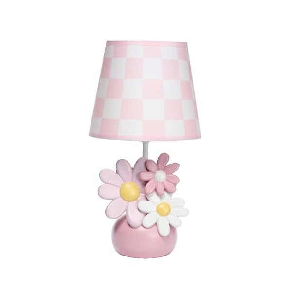 Lambs & Ivy Daisy Dreams Hand-Painted Pink Floral Lamp w/Shade and LED Bulb