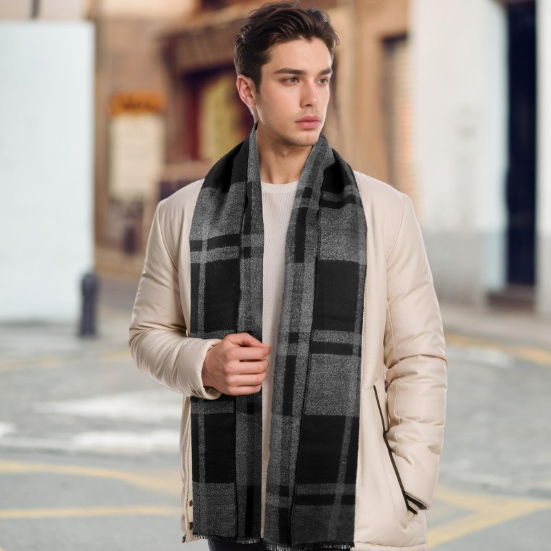 Wrap yourself in warmth with our men's winter scarf, crafted from cashmere-like fabric that is incredibly soft and gentle against the skin. This scarf is designed to keep you warm and comfortable, offering breathability that prevents overheating, even in cold weather.  Adopting timeless classic and fashionable grid pattern design a touch of sophistication to any outfit, making it a versatile accessory that transitions seamlessly from casual to formal settings.  With its generous size, this mens scarves offers the flexibility to be styled in various ways, whether you prefer it knotted or draped. It’s wide enough to cover your mouth on especially cold days, ensuring full protection from the elements. Despite its warmth, the scarf remains lightweight, avoiding the bulkiness that often comes with winter accessories.  This winter scarf for men uk is built to last, maintaining its elegant look and soft feel through multiple seasons. Customers love its exceptional value, making it not just a stylish choice, but a smart investment for the winter months.  Whether you're heading out for a brisk walk, a day at the office, or a weekend getaway, this scarf is the perfect companion. Enhance your winter wardrobe with a scarf that combines style, comfort, and quality—a must-have for any discerning man.